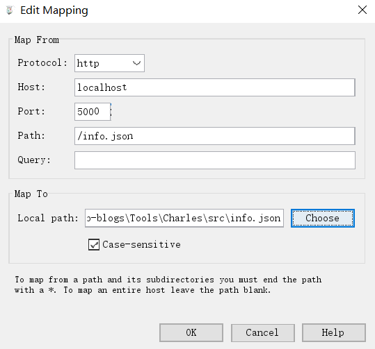 菜单栏 --> Tools --> (点击)Map Local Settings --> 选中“Enable Map Local”,然后点击下方的 add,填上你的数据接口,选择模拟的数据文件(Local Path) 。点击 OK 就可以了。
