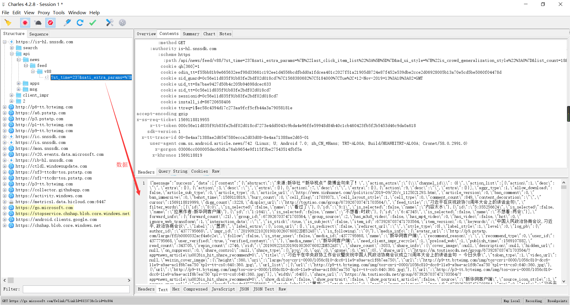 比如移动端今日头条,打开APP,就会看到 Charles 获取到封包,其中有一个是新闻 API 接口。